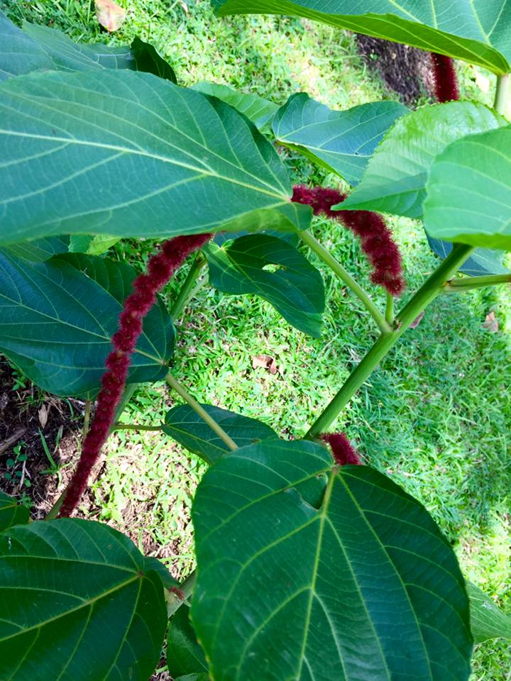 Plant Family: Belongs to the Euphorbiaceae family, which includes Carapite (Amanoa caribaea), a large tree, dominant in the Dominica rain forest; Cassava (Manihot esculenta); the Castor oil plant (Ricinus communis); and the deadly Madjini or Manchineel (Hyppomane mancinella) - the “Sea Venom” of the Caribs; and to the Spaniards, the “little apple of death", both referring to the fact that the Manchineel is one of the most poisonous trees in the world; (the last three and Catstail are decidedly poisonous, a characteristic of many Euphorbias).